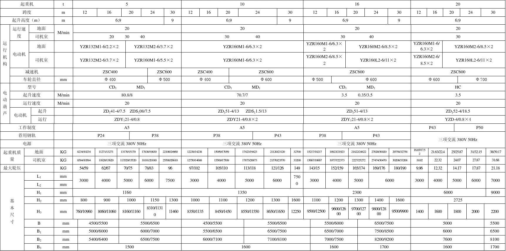 技術參數: 龍門起重機的主要技術參數包括以下幾個方面: 起重量(Rated capacity):指設備能夠安全起重的最大重量。通常以噸(t)或千克(kg)作為單位。 起升高度(Lifting height):指起重機或龍門吊能夠垂直起升的最大高度,通常以米(m)作為單位。 工作速度(Working speed):包括起升速度、小車(龍門吊)或回轉速度(起重機),通常以米每分鐘(m/min)或米每秒(m/s)作為單位。 工作級別(Working class):用來描述起重機或龍門吊的工作強度和使用頻率,一般分為A1-A8級,級別越高表示設備的工作強度越大。 控制方式(Control mode):包括手動控制和電氣控制兩種方式。電氣控制方式可以進一步細分為集中控制和無線遙控等。 動力源(Power source):通常是電動或液壓動力,也有一些使用燃油或氣體動力的起重機。 結構形式(Structure form):指起重機或龍門吊的結構類型,例如單梁起重機、雙梁起重機、門式起重機等。 安全保護裝置(Safety devices):包括限位器、重載保護裝置、防碰撞裝置等,用于確保設備的安全運行和防止意外事故發生。 需要根據實際需求選擇合適的龍門吊或起重機,并參考其技術參數來滿足工作場所的要求。具體的技術參數可能因不同的制造商和型號而有所差異,使用前應仔細查閱相關設備的說明書和技術規格。