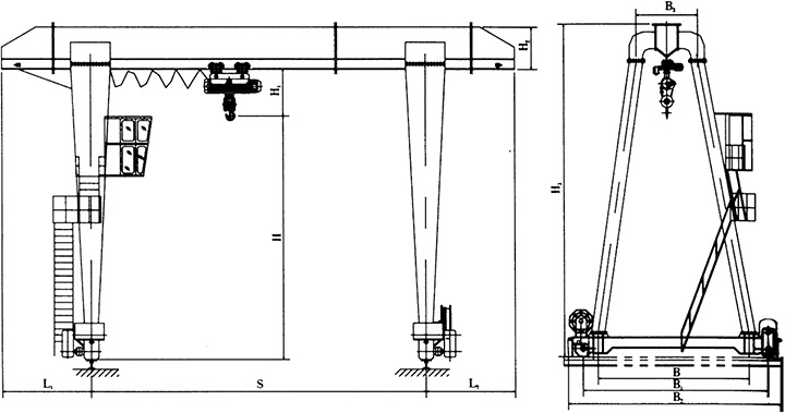 甘肅蘭州門(mén)式起重機(jī) 豎井龍門(mén)吊的結(jié)構(gòu)形式和起升機(jī)構(gòu)