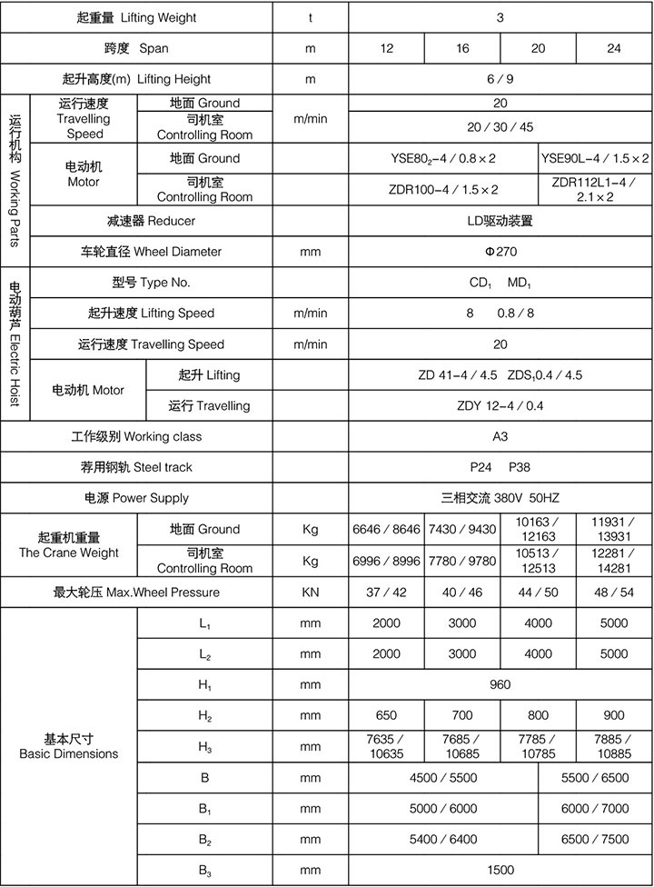 MH型電動(dòng)葫蘆門(mén)式起重機(jī)與CD MD等型號(hào)的電動(dòng)葫蘆配套使用,是一種有軌運(yùn)行的中小型起重機(jī),其適用起重量3~20噸,適用跨度12~30米,工作環(huán)境-20℃~+40℃內(nèi)。