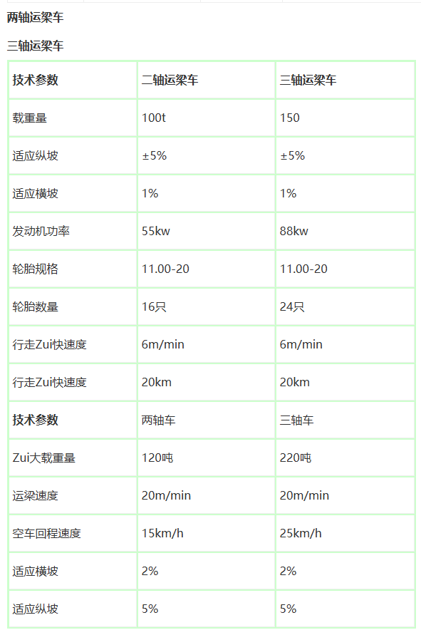 以上就是關于運梁車的基本詳情,如有需要的話就聯系正規的運梁車廠家。技術參數: